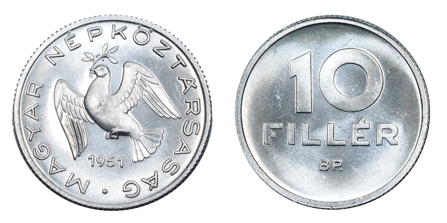 Leírás:Al 10 fillér 1951 BP., 0.84gElõlap: Hátlap: Referencia:Ad. F3.1 Tartásfok:UNC