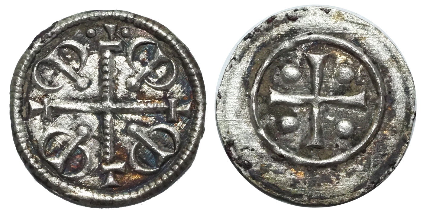 Leírás:Ag denár, szigla: középen fent kereszt metszéspontjánál kétoldalt egy-egy pont! Jelenleg nem publikált variáció! 0.42Elõlap: Hátlap: Referencia:Op. 20.13.1.1, Éh 60, Huszár 159 Tartásfok:gEF