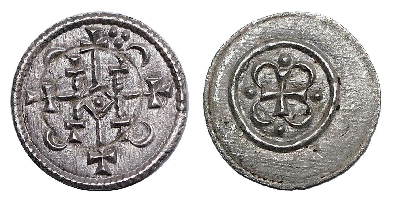 Leírás:Ag denár, szigla: kereszt mellett három pont. Mindössze még egy példány ismert a szakirodalom szerint! 0.17gElõlap: Hátlap: Referencia:Op. 20.14.1.1.20, Éh 62, Huszár 160 Tartásfok:UNC
