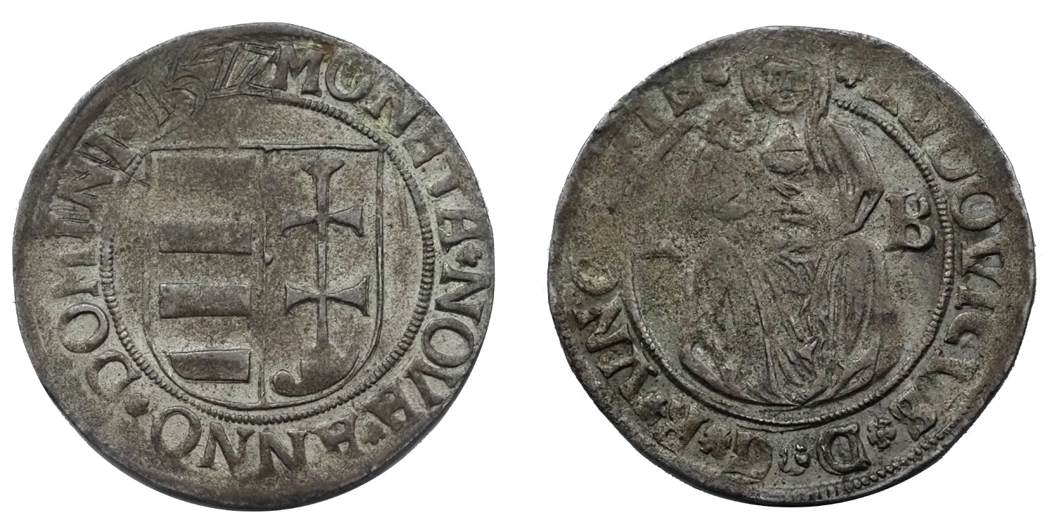 Leírás:Ag garas 1522 L-B Buda, 2.93gElõlap:címerpajzsHátlap:Madonna karján JézusReferencia:Éh 668a, Huszár 840, Pohl 254-1 Tartásfok:EF