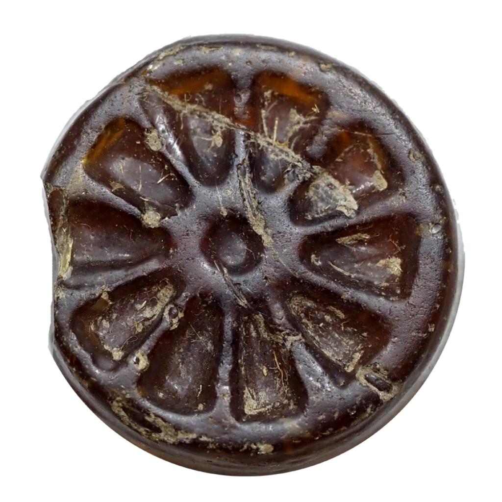 A zborói uradalom /Felvidék/ igás robotbárcája a XVIII. Század végéről, Aspremont gróf birtokáról, anyaga üveg. Borsárga változat. Ritka! Előlap: C és A betű /Comes Aspremont/ egymásba fonódvaHátlap: kerékSúly: 6.31gReferencia: Z SA-II. 5.eTartásfok: EF